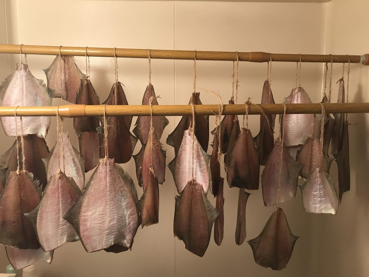 1DKのアパートの一室で50匹ものカレイを干さなくてはいけませんので干す場所は限られます。