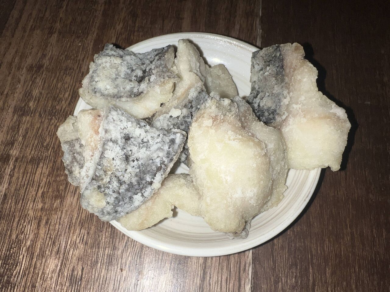 片栗粉まぶして揚げるだけ。味付けは塩のみ。