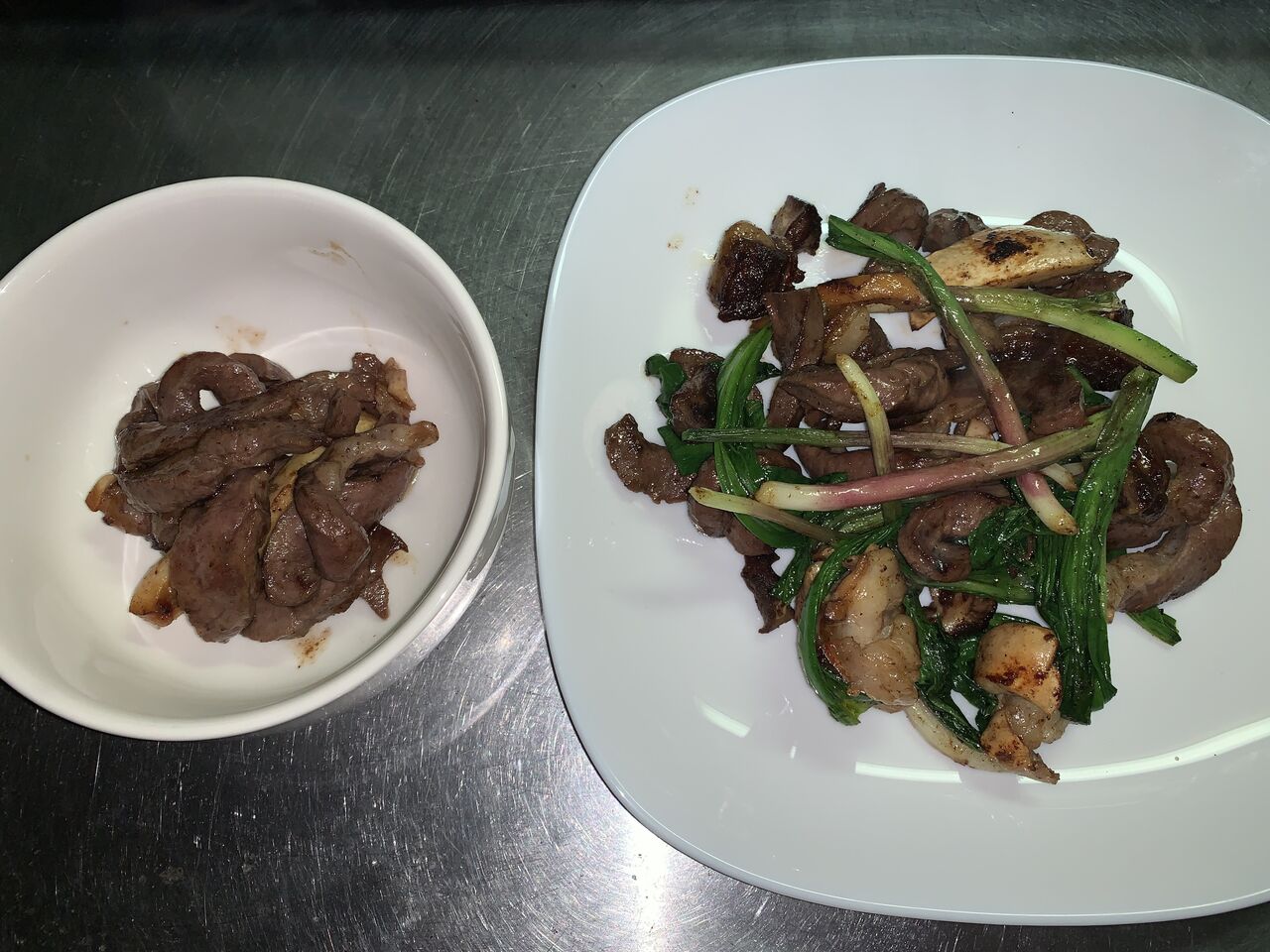 右 ヒグマの心臓と行者ニンニクの炒めもの