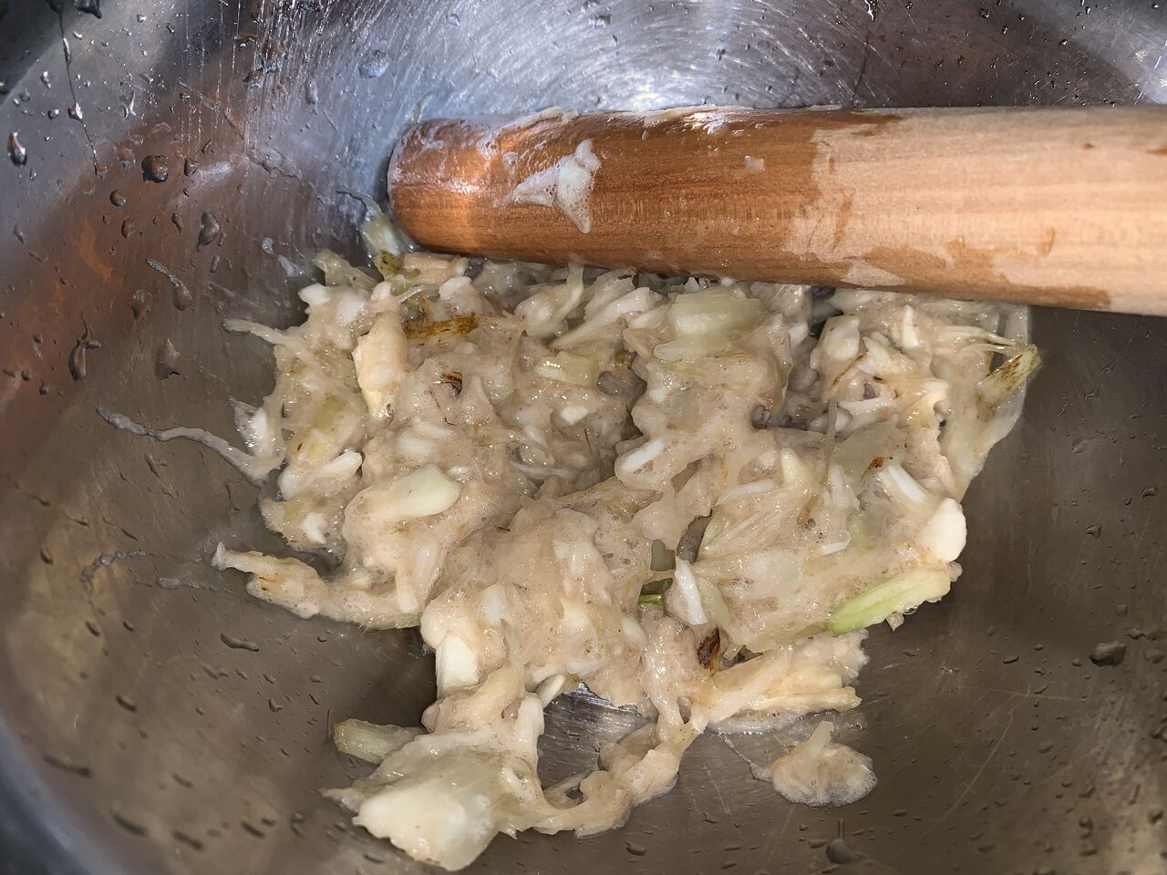 参考文献には斧の背で叩くとありますが、棒で突いてつぶしました。