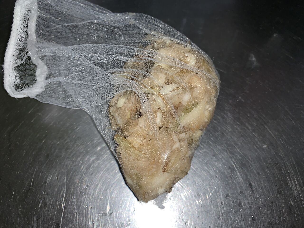 さらしの方が良いのかもしれませんが、無いので水切りネットで代用。